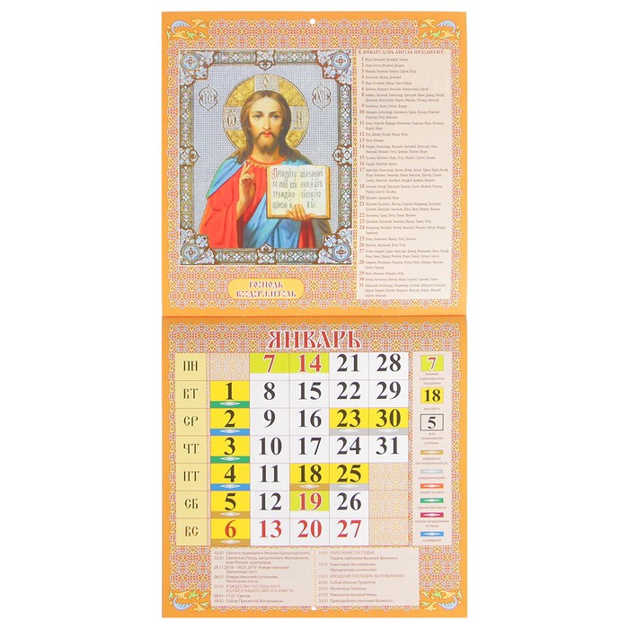 Календарь на скрепке "Православный. Праздники и именины" 2019 год, 23х23см поможет организовать ваше рабочее пространство и время. Востребованные предметы в удобной упаковке будут всегда под рукой в нужный момент.