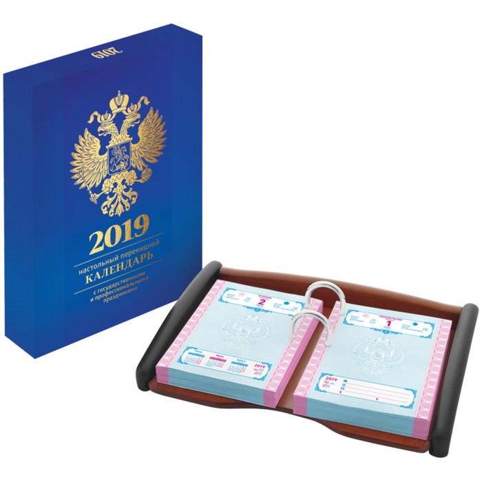 Календарь настольный перекидной 2019 OfficeSpace, 160 листов, обложка офсет, цветной с российской символикой, в подарочной упаковке, без подставки поможет организовать ваше рабочее пространство и время. Востребованные предметы в удобной упаковке будут всегда под рукой в нужный момент.