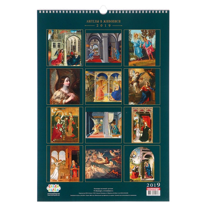 Календарь перекидной, ригель и пружина "Ангелы в живописи" 2019 год, 34х49см
