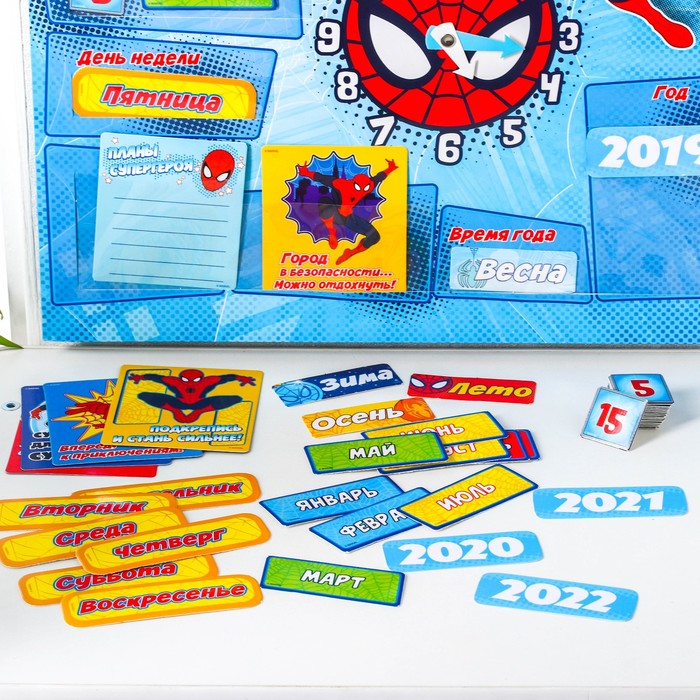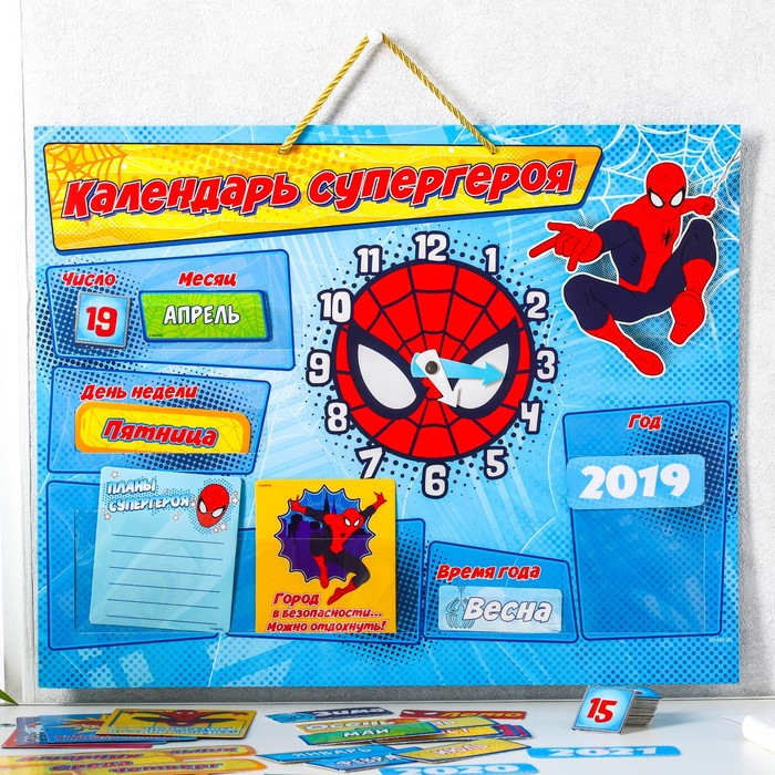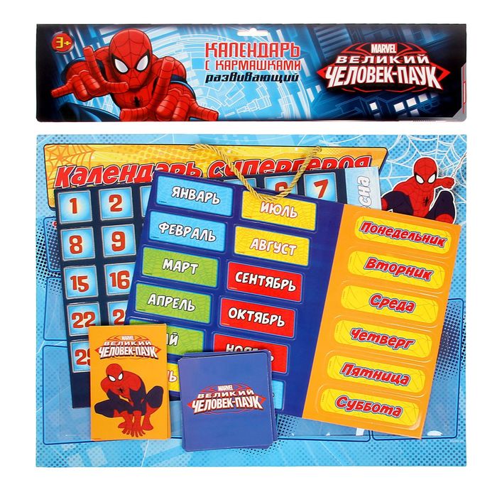 Человек-паук сделает процесс обучения весёлым и превратит его в игру. Гибкий материал календаря и карточек безопасен для ребёнка.