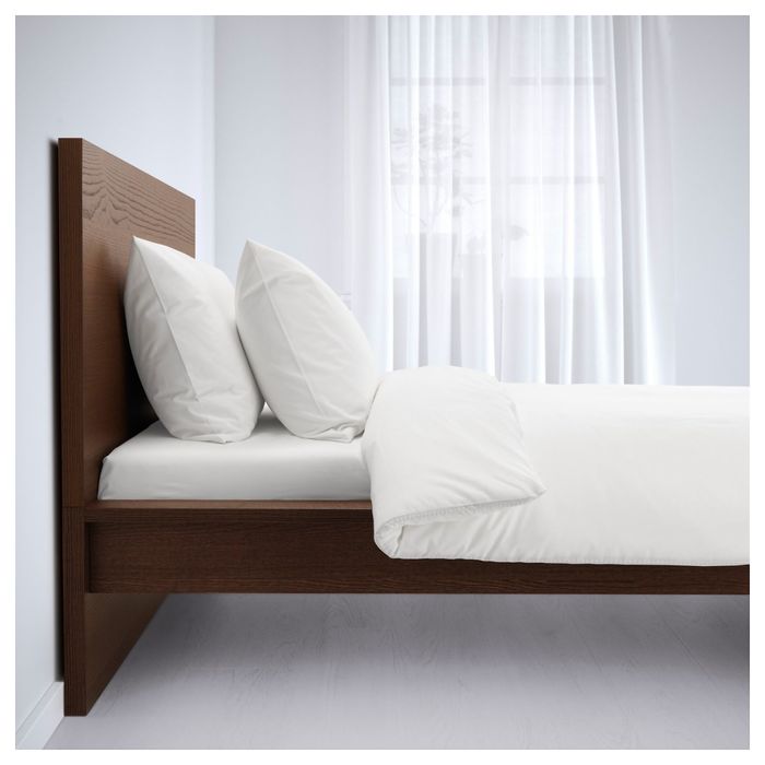 Каркас кровати, высокий, без основания, цвет коричневая морилка ясеневый шпон МАЛЬМ
