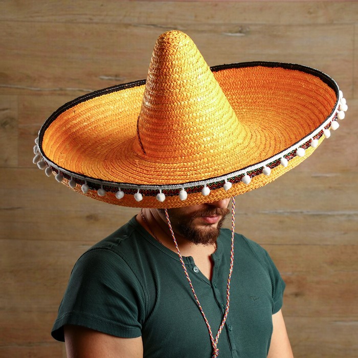 Аррива! Добро пожаловать в мир текилы, маракасов и кактусов! Карнавальная шляпа "Сомбреро", р-р 56-58, цвет жёлтый погрузит вас в мексиканскую атмосферу улыбчивых людей и острых соусов! Почему бы не устроить костюмированную вечеринку в латиноамериканском стиле? Или конкурс шляп? Такой головной убор отлично подойдёт и для тематического представления или спектакля! Эта эффектная деталь национального костюма передаст весь колорит жаркой страны. С такой шляпой вы почувствуете себя настоящим мачо! Можно фантазировать как угодно.