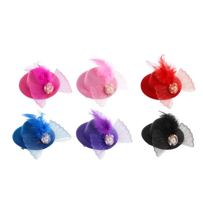 Карнавальный зажим шляпка "Стильная таинственность", цвета МИКС станет изящным дополнением вашей причёски. Эффектная деталь за считаные секунды добавит облику торжественности и украсит ваши локоны. Такая креативная изюминка будет отлично сочетаться с любым костюмом на вечеринках или торжествах. Чтобы сделать образ запоминающимся, достаточно одного аксессуара!