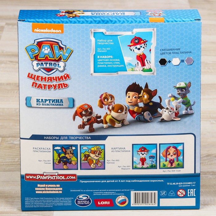 Может быть, именно такой необычный товар, как Картина из пластилина "Щенячий патруль "Маршалл", раскроет неожиданные способности у вашего ребёнка. И даже если он не станет новым Рафаэлем, то ему, определённо, обеспечена богатая фантазия, креативное мышление и золотые руки.