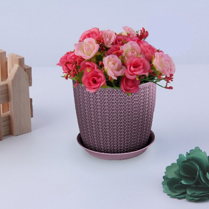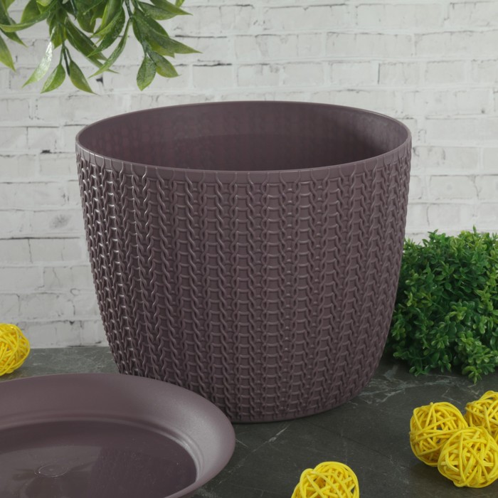 Кашпо 2,8 л с поддоном d=18 см "Вязание", цвет пурпурный