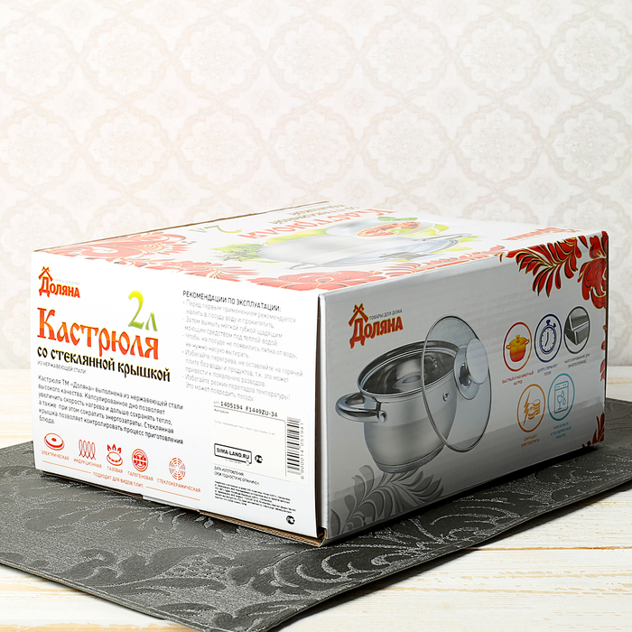 Кастрюля подходит для всех видов плит: газовых, электрических (в том числе галогеновых, стеклокерамических, индукционных). Легко моется в посудомоечной машине.