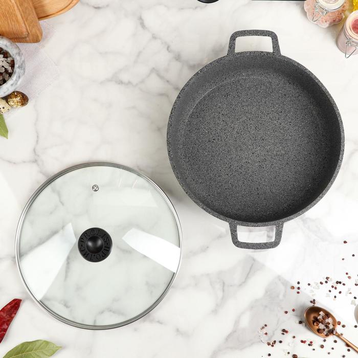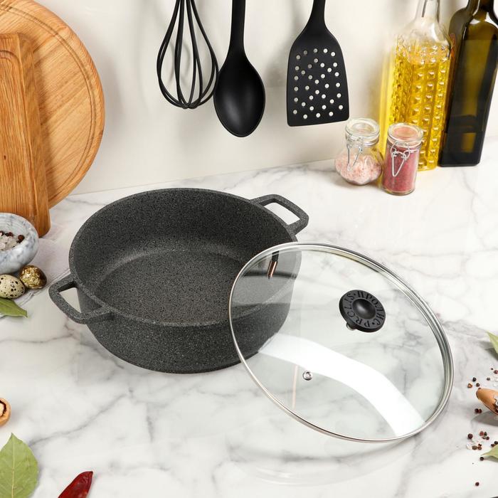 Кастрюля 3 л с внутренним и внешним антипригарным покрытием (гранит), со стеклянной крышкой