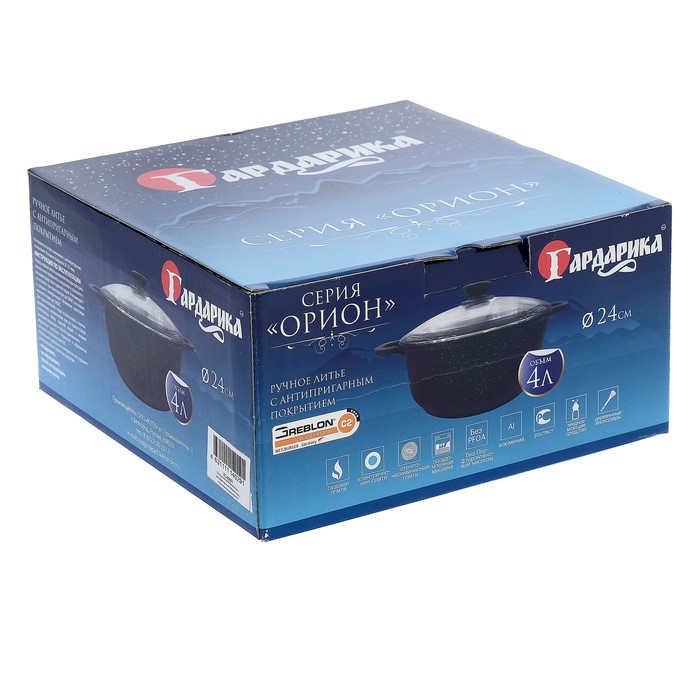 Кастрюля 4 л "Орион", антиприграное покрытие, стеклянная крышка