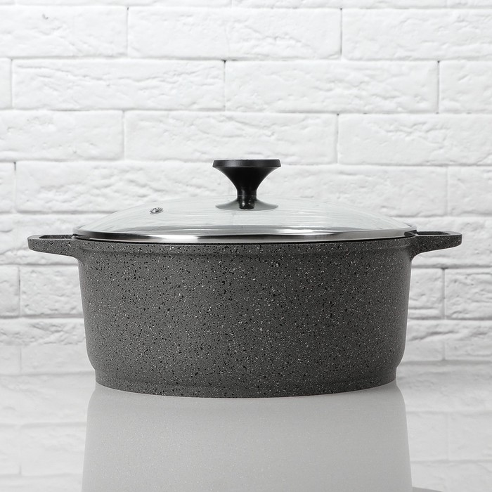 Кастрюля 4 л с внутренним и внешним антипригарным покрытием (гранит), со стеклянной крышкой