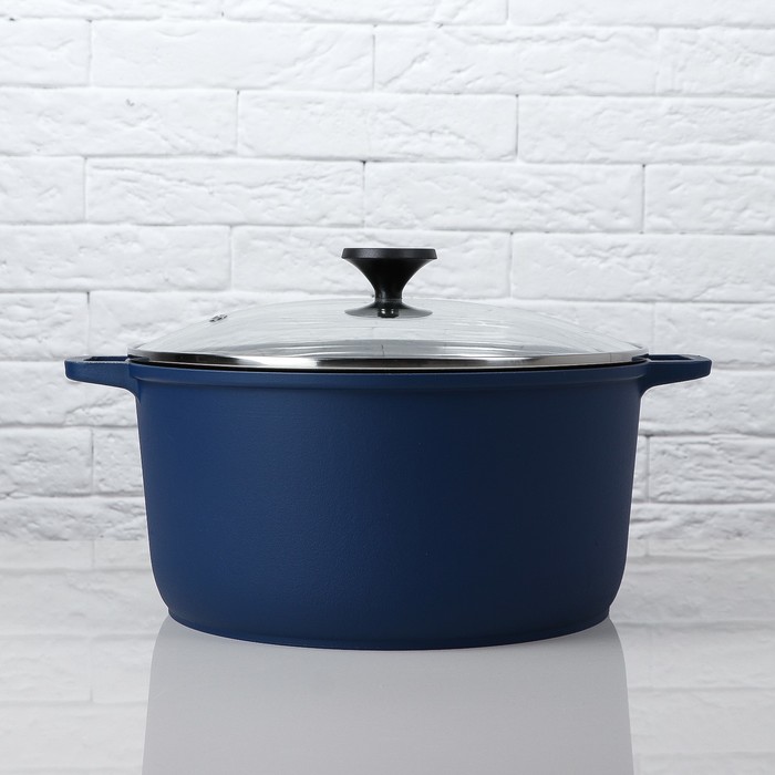 Кастрюля 6 л с антипригарным покрытием, со стеклянной крышкой "Matte Navy Blue"