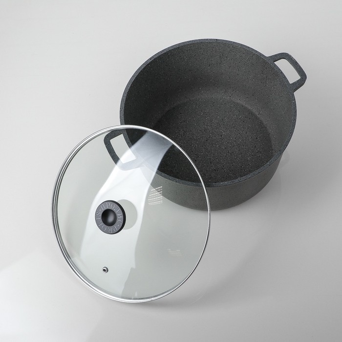 Кастрюля 6 л с внутренним и внешним антипригарным покрытием (гранит), со стеклянной крышкой