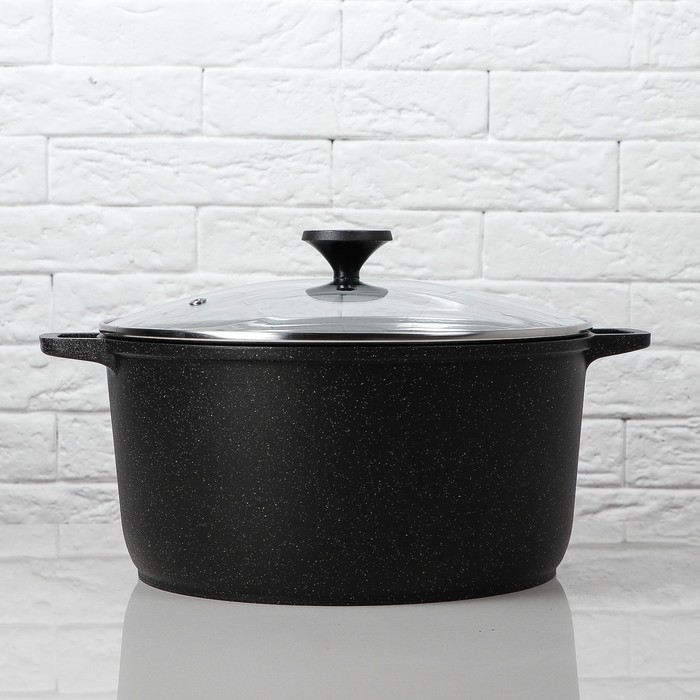 Кастрюля 6 л с внутренним и внешним антипригарным покрытием со стеклянной крышкой