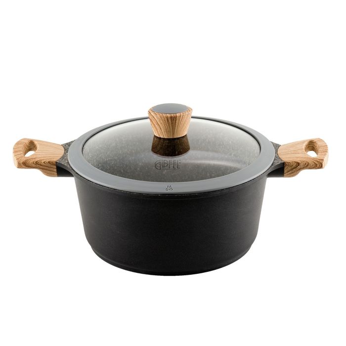Посуда Gipfel из литого алюминия производится из оксидированного металла, а также имеет защитную плёнку, устойчивую к износу и деформации.