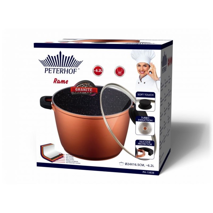 От качества посуды зависит не только вкус еды, но и здоровье человека. Кастрюля Peterhof, 6,2 л — товар, соответствующий российским стандартам качества. Любой хозяйке будет приятно держать его в руках. С нашей посудой и кухонной утварью приготовление еды и сервировка стола превратятся в настоящий праздник.