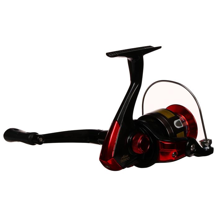 Безынерционная катушка Stinger Aero оснащена тремя шариковыми подшипниками и одним роликовым. Металлическая шпуля имеет идеально гладкий бортик с защитным покрытием Red Metallic, что позволяет использовать тонкую леску или плетёный шнур. В комплект входит запасная пластиковая шпуля.