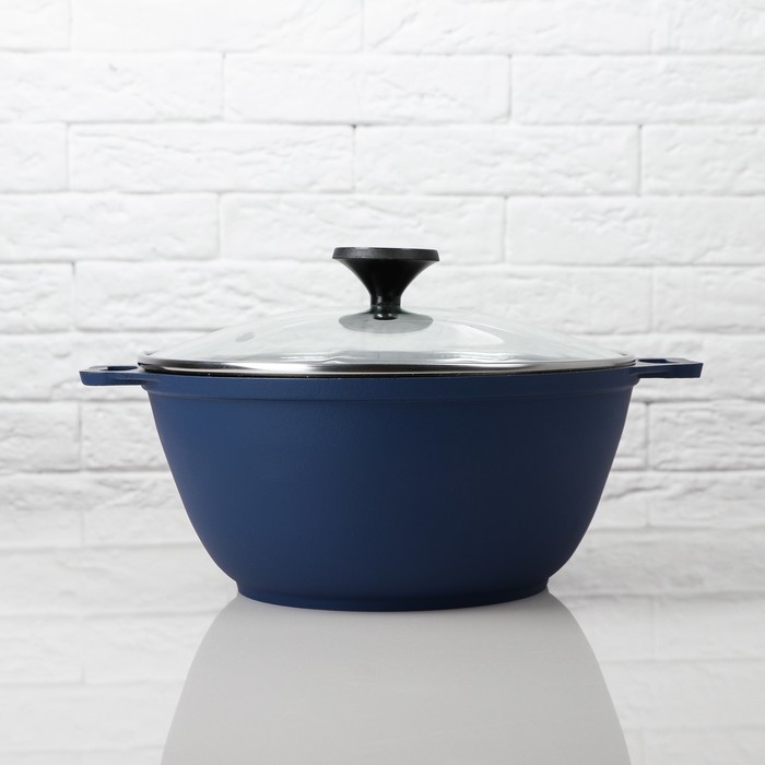 Казан 2,5 л с антипригарным покрытием, со стеклянной крышкой "Matte Navy Blue"