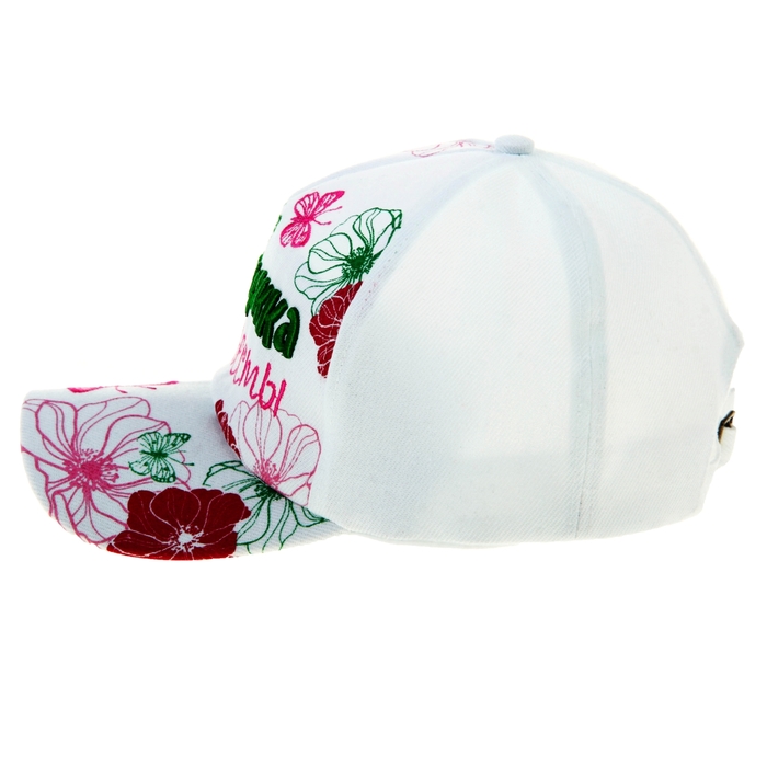 Стильная женственная кепка с плотным широким козырьком. Изделие имеет универсальный размер, полноцветное нанесение, девчачьи надписи. Модель прекрасно подойдет как для занятий спортом, так и для прогулок по городу, отпуска.
