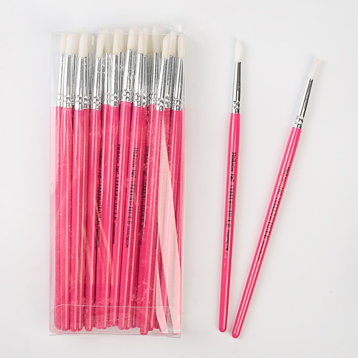 Кисть нейлон круглая №7 ручка лакированная розовая 16см