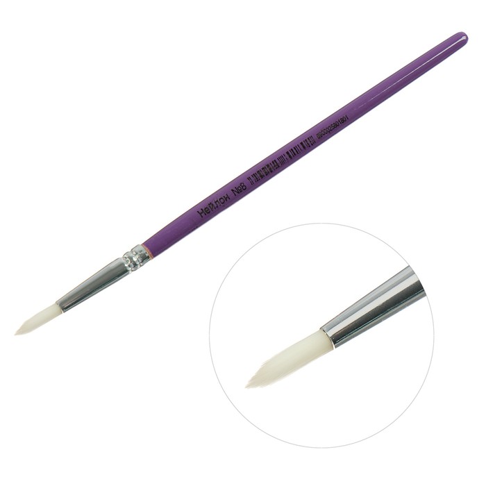 Кисть нейлон круглая №8 ручка лакированная фиолетовая 16см