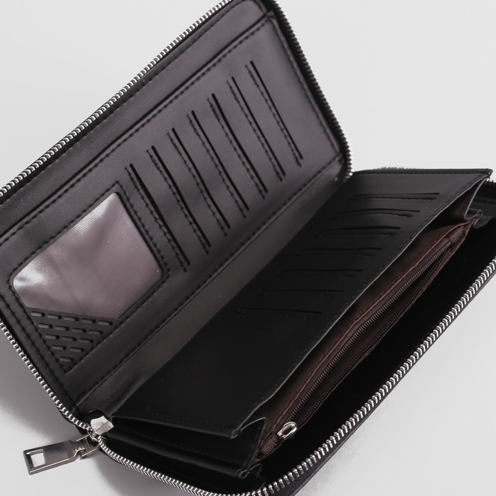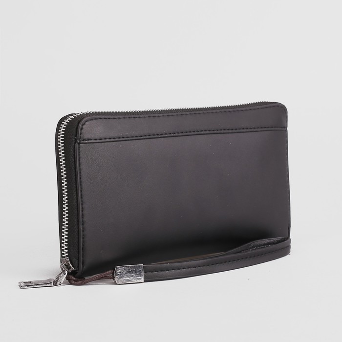 Клатч мужской, 2 отдела, для карт, для монет на молнии, с ручкой, цвет чёрный