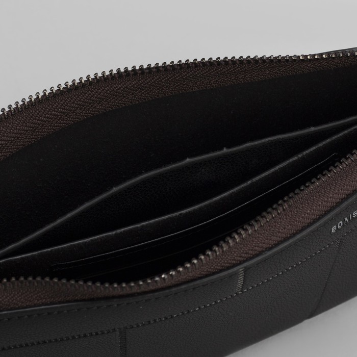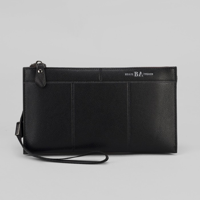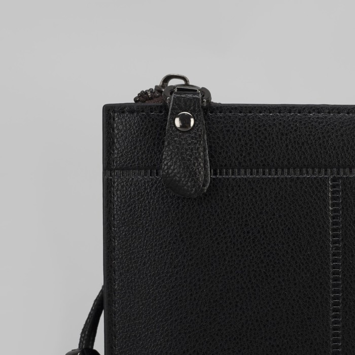 Клатч мужской, 2 отдела, для карт, на молнии, ручка, цвет чёрный