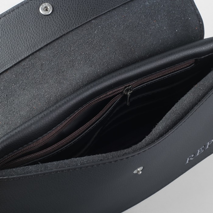 Клатч мужской, 2 отдела на клапане, цвет чёрный