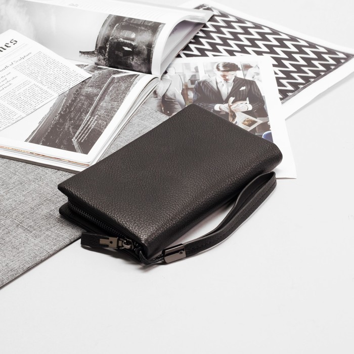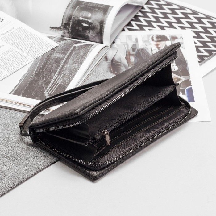 Клатч мужской, 2 отдела на молнии, с ручкой, цвет чёрный
