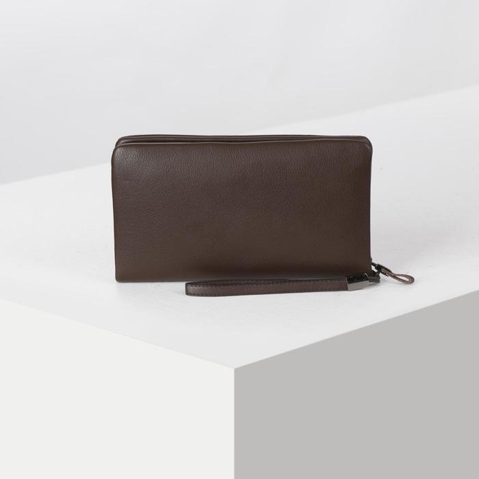 Клатч мужской, 2 отдела на молнии, с ручкой, цвет кофе