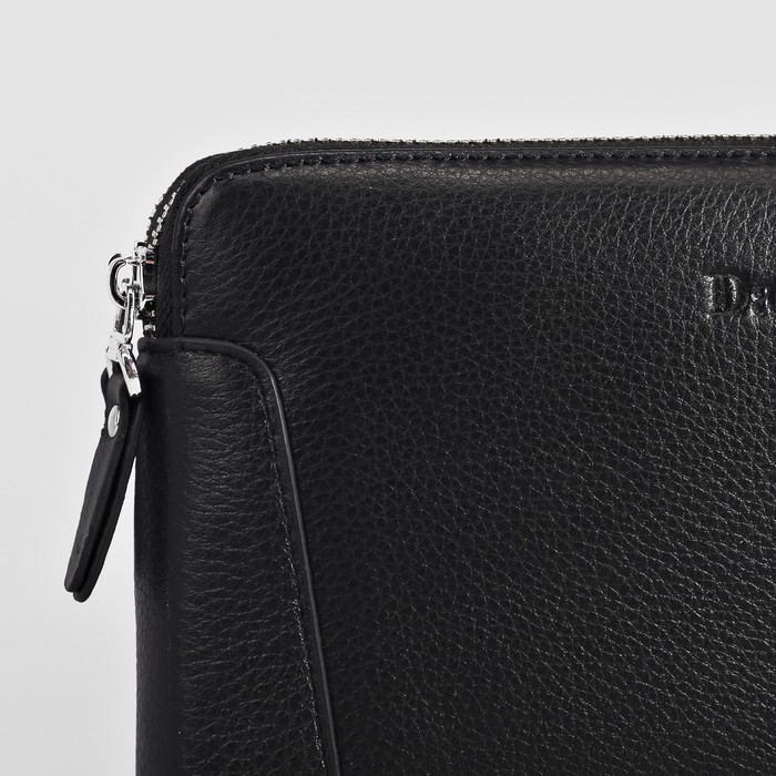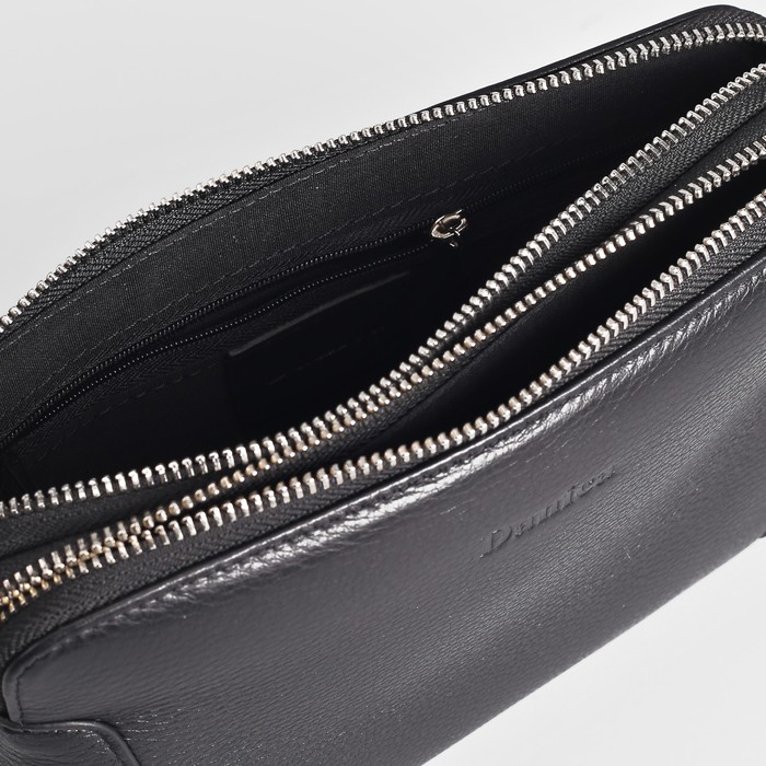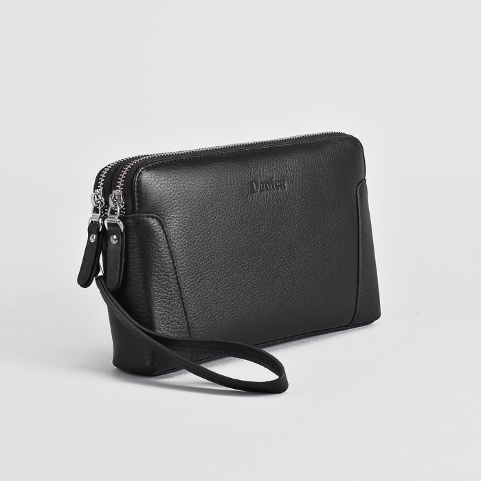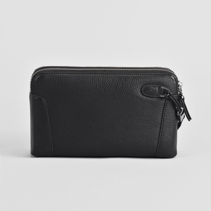 Клатч мужской, 2 отдела на молниях, ручка, цвет чёрный