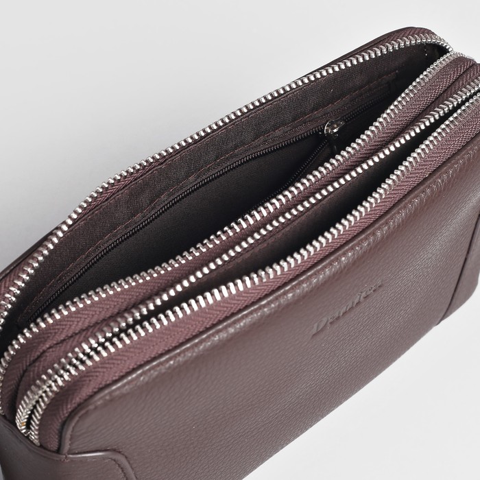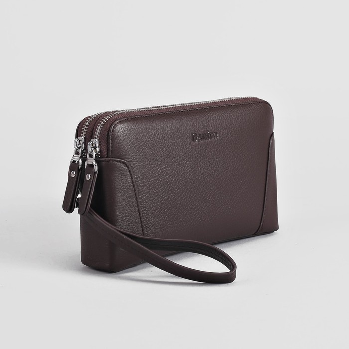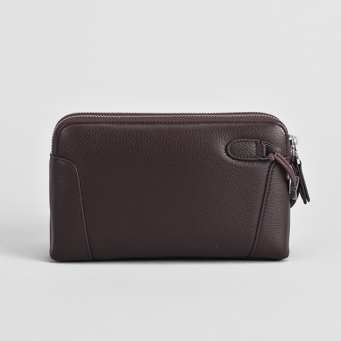 Клатч мужской, 2 отдела на молниях, ручка, цвет кофе