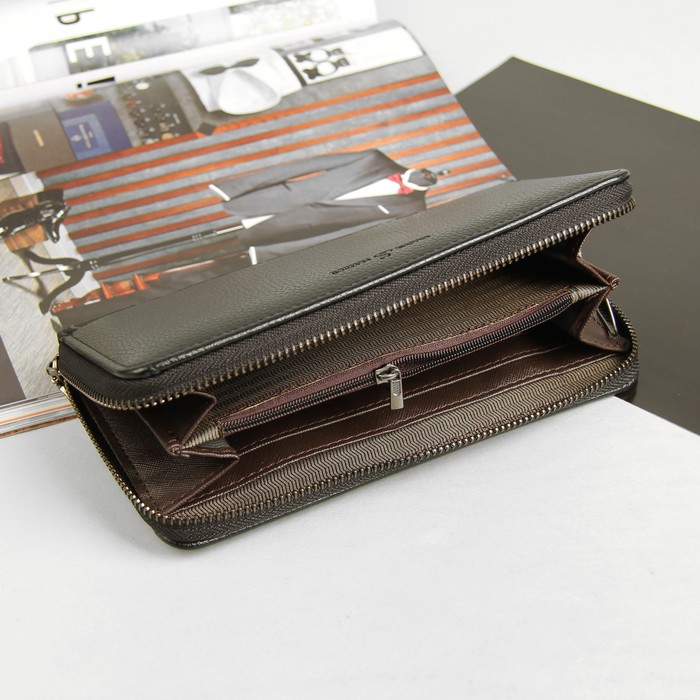 Клатч мужской, 2 отдела, наружный карман, на молнии, хлястик, цвет чёрный