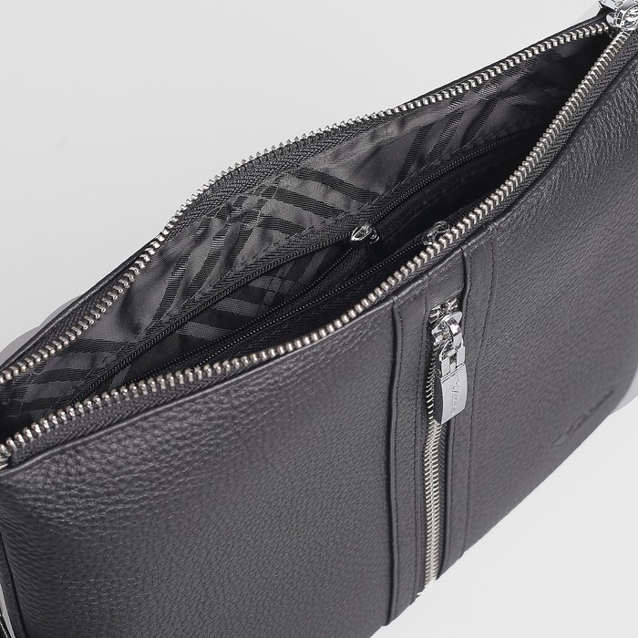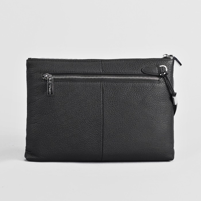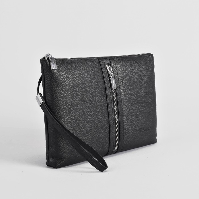 Клатч мужской, 3 отдела, 2 наружных кармана, ручка, цвет чёрный