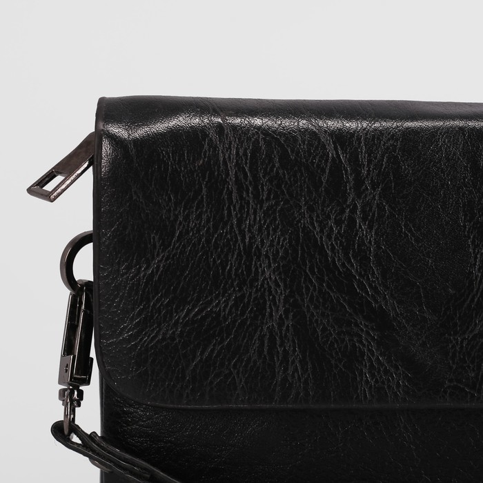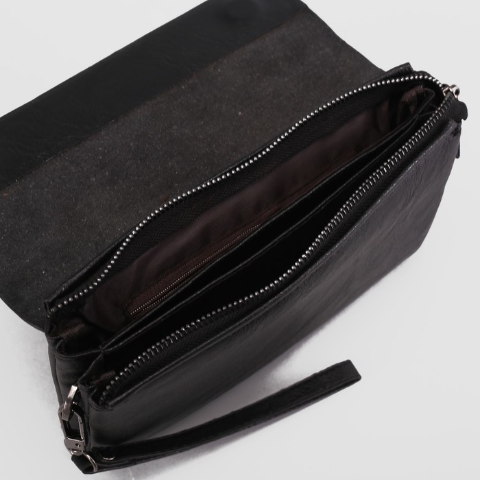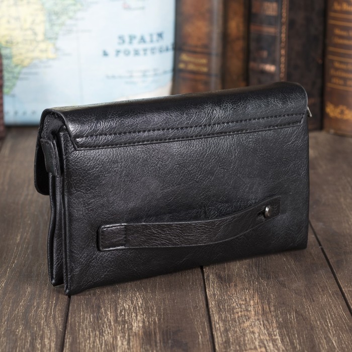 Клатч мужской, 3 отдела, для карт на молнии, хлястик, с ручкой, цвет чёрный