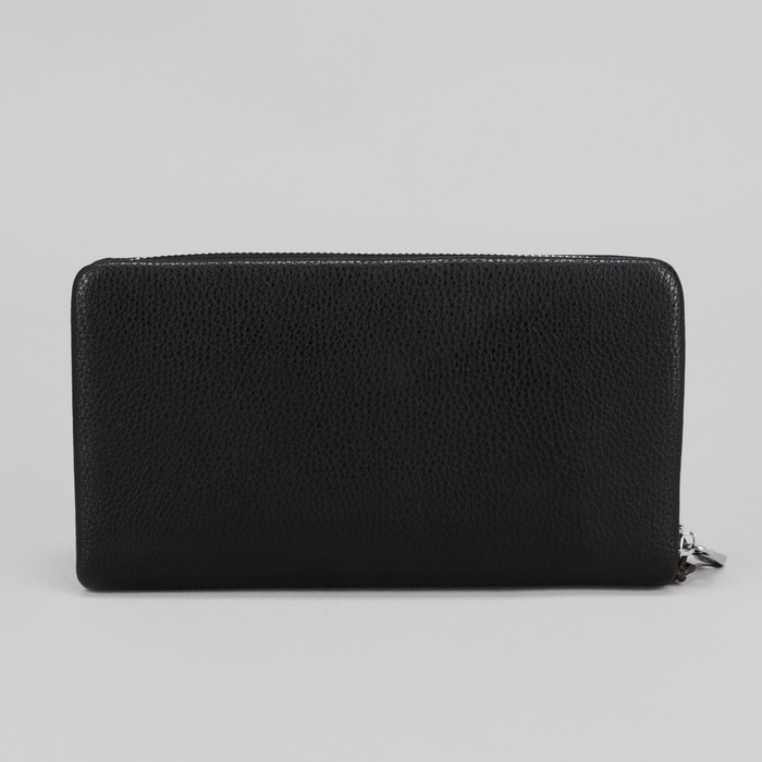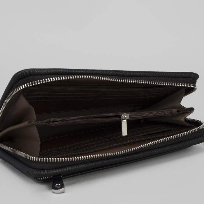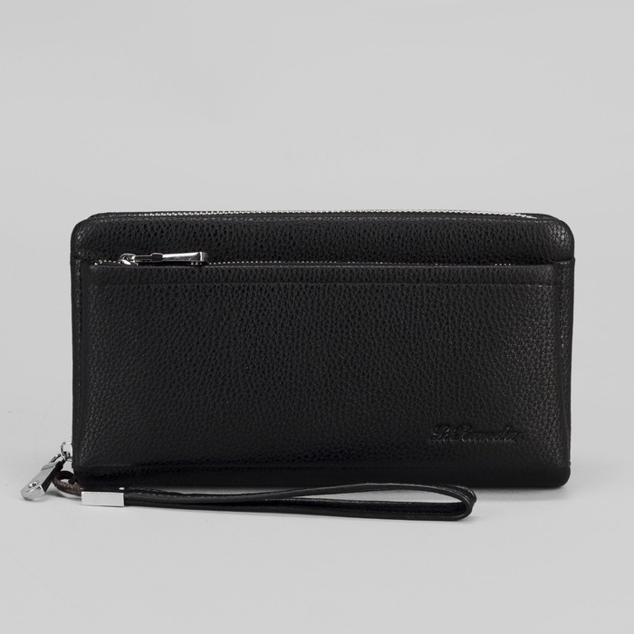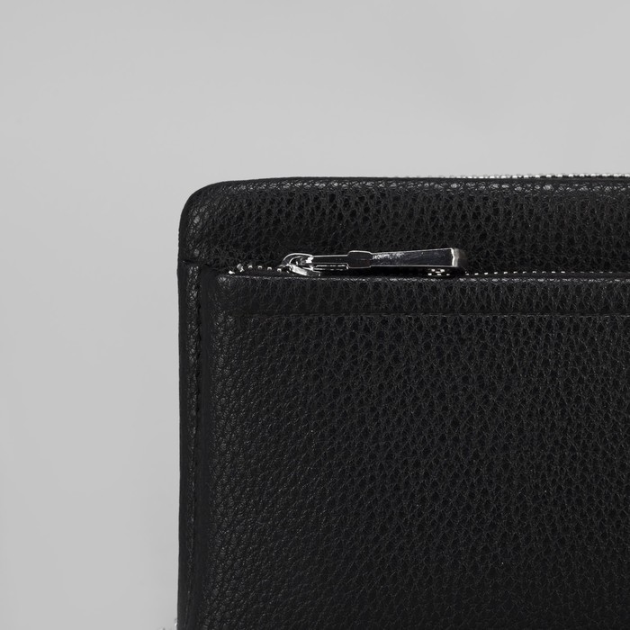 Клатч мужской, 3 отдела, для карт, на молнии, наружный карман, ручка, цвет чёрный