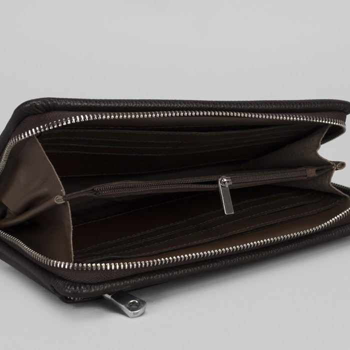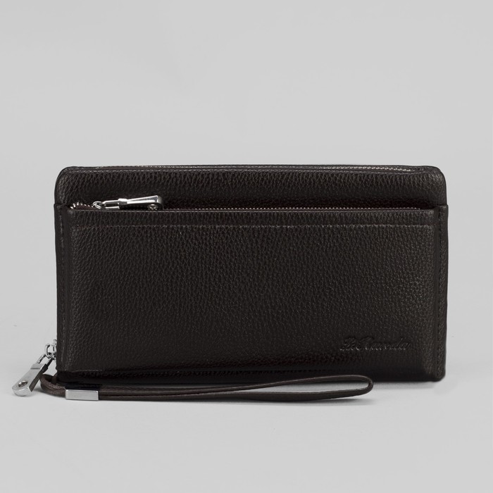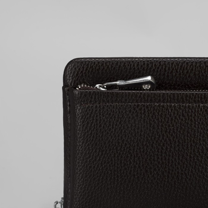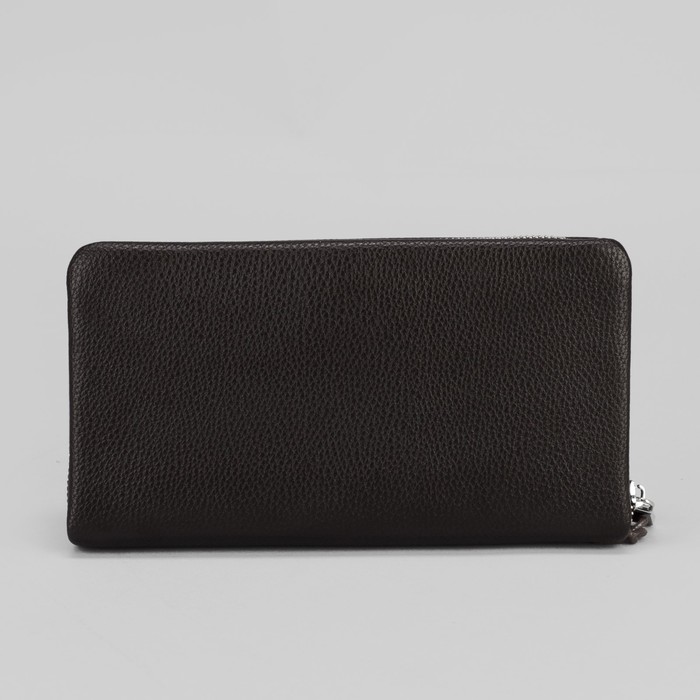 Клатч мужской, 3 отдела, для карт, на молнии, наружный карман, ручка, цвет кофе