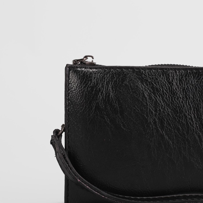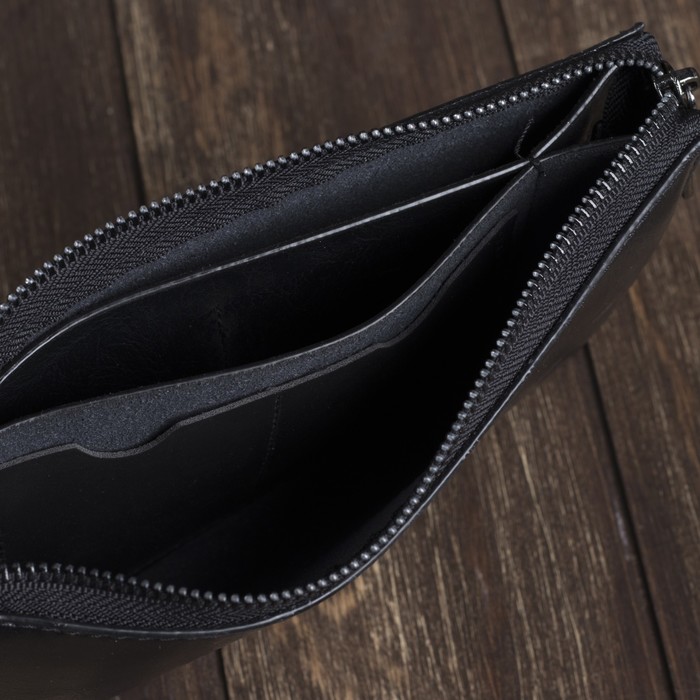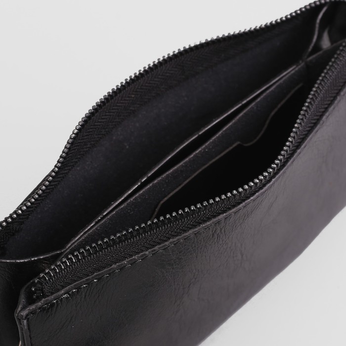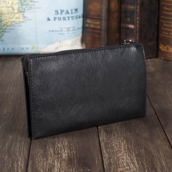 Клатч мужской, 3 отдела, для карт на молнии, с ручкой, цвет чёрный