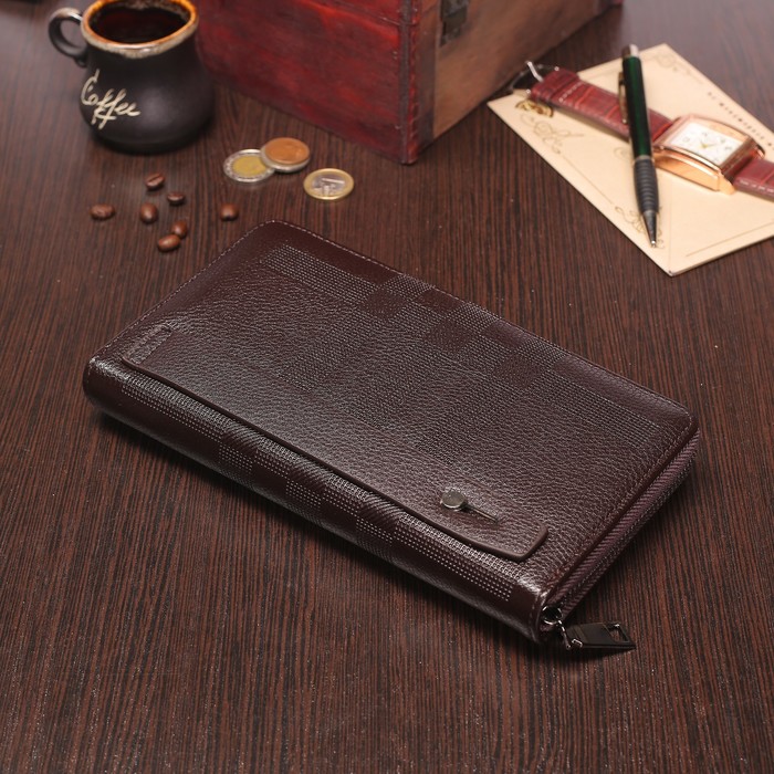 Клатч мужской, 3 отдела, для карт, с хлястиком, цвет коричневый