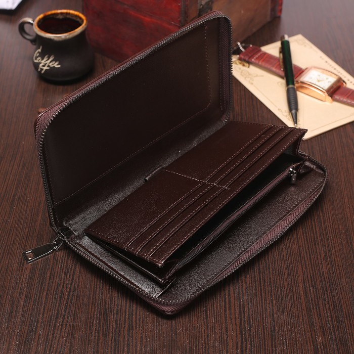Клатч мужской, 3 отдела, для карт, с хлястиком, цвет коричневый