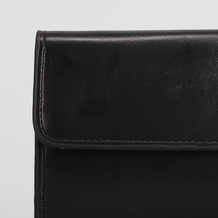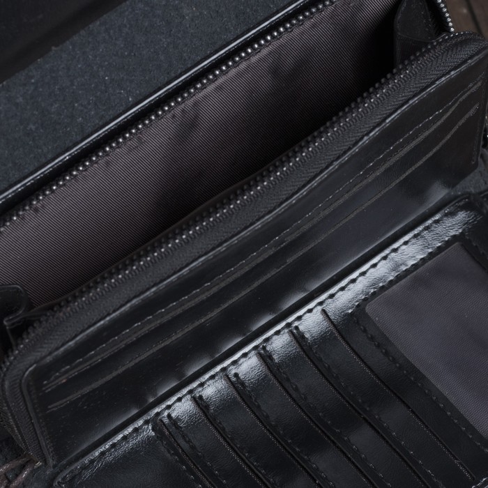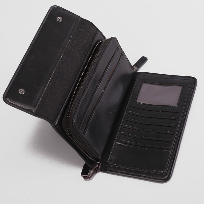 Клатч мужской, 4 отдела, для карт на кнопках, с ручкой, цвет чёрный