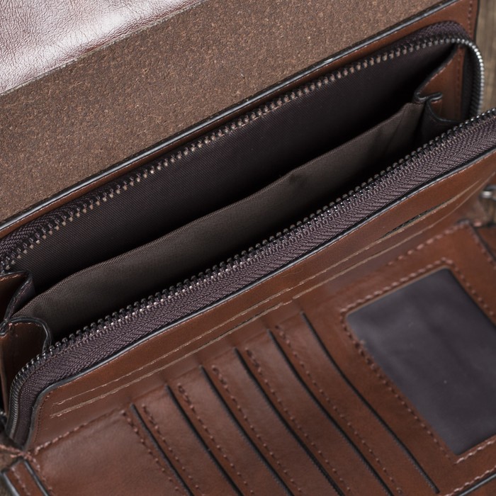 Клатч мужской, 4 отдела, для карт на кнопках, с ручкой, цвет кофе