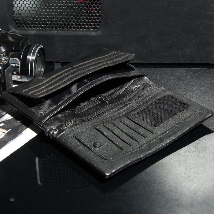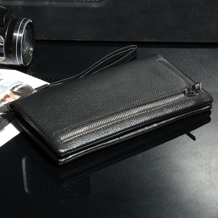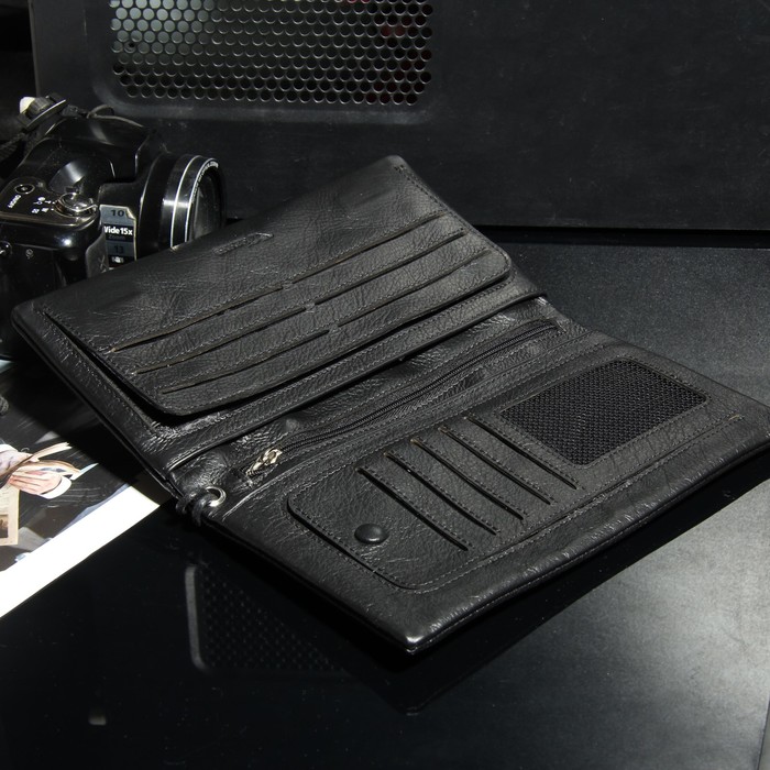 Клатч мужской, 4 отдела, для карт, на магните, наружный карман, с ручкой, цвет чёрный