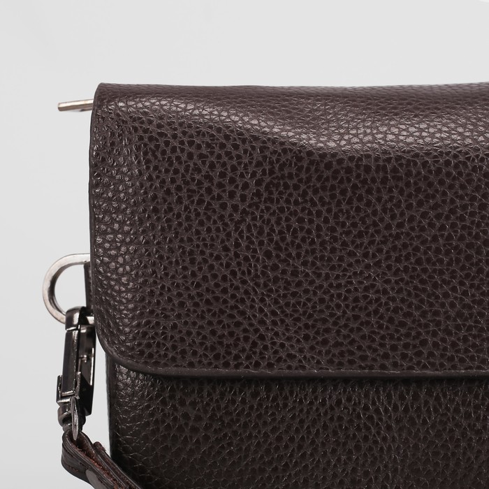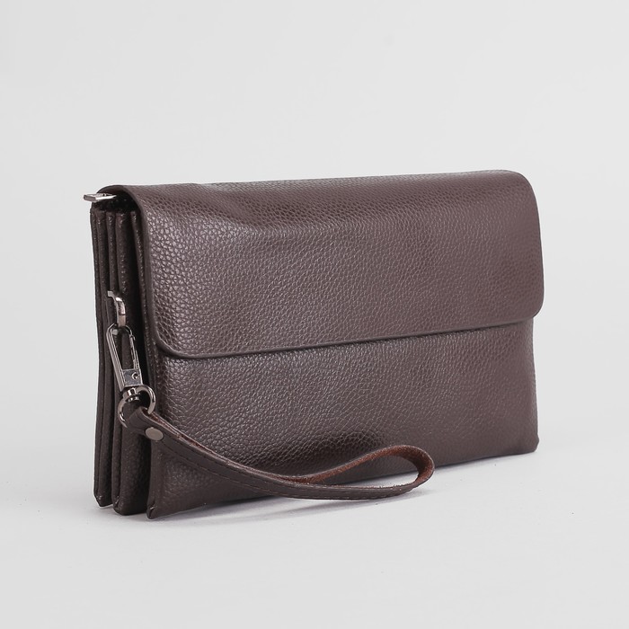 Клатч мужской, 5 отделов, для карт на молнии, хлястик, с ручкой, цвет кофе