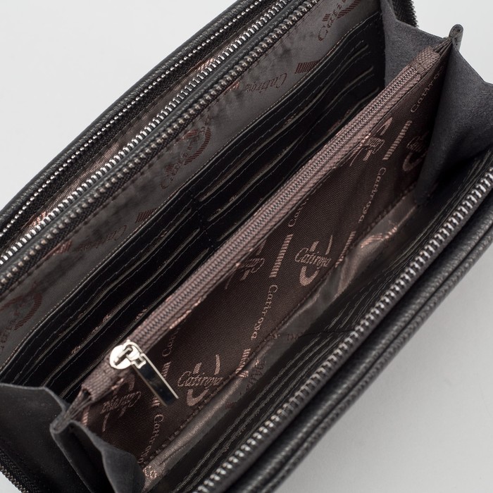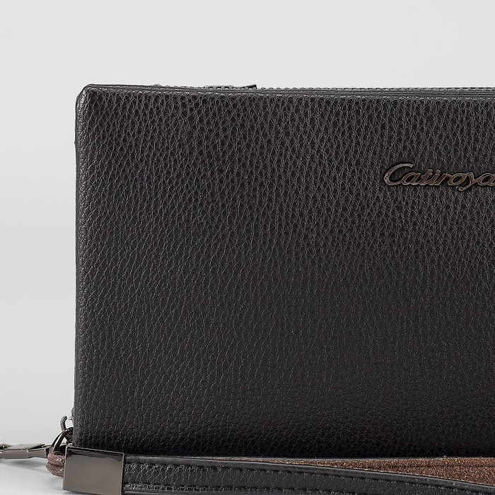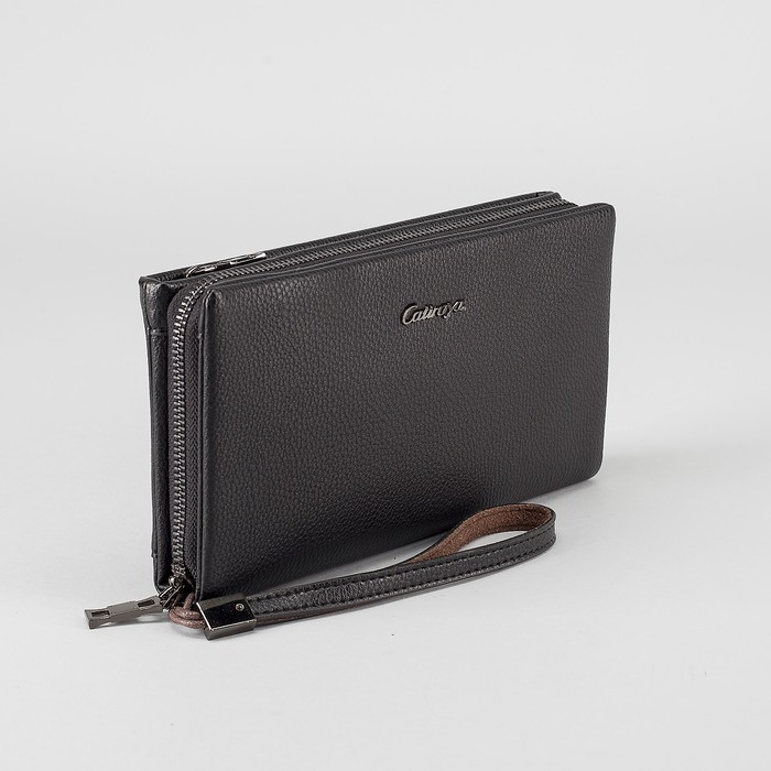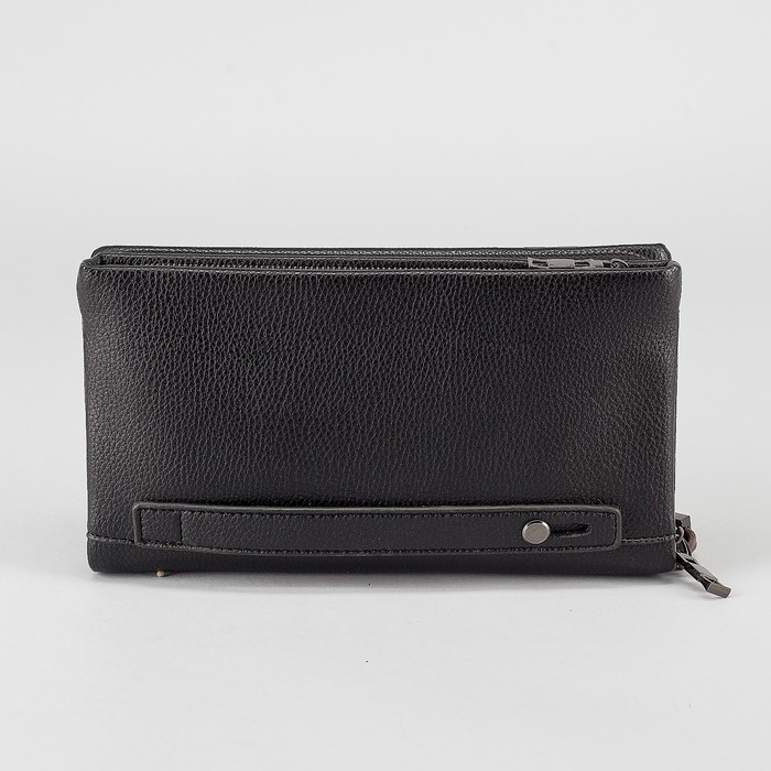 Клатч мужской на молнии, 2 отдела, ручка, хлястик, цвет чёрный