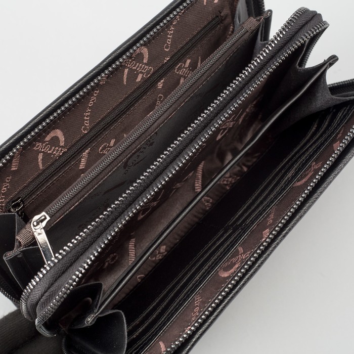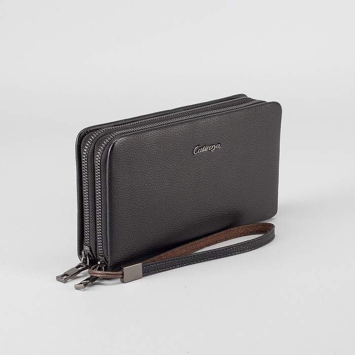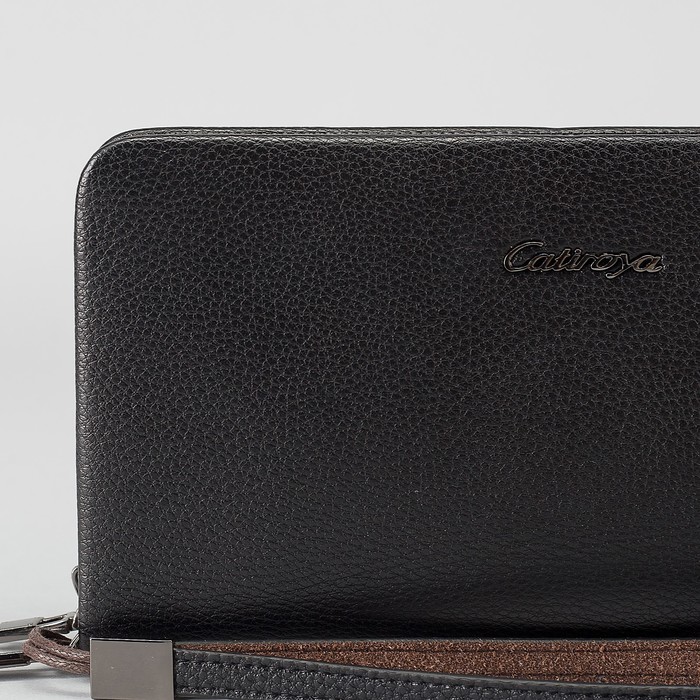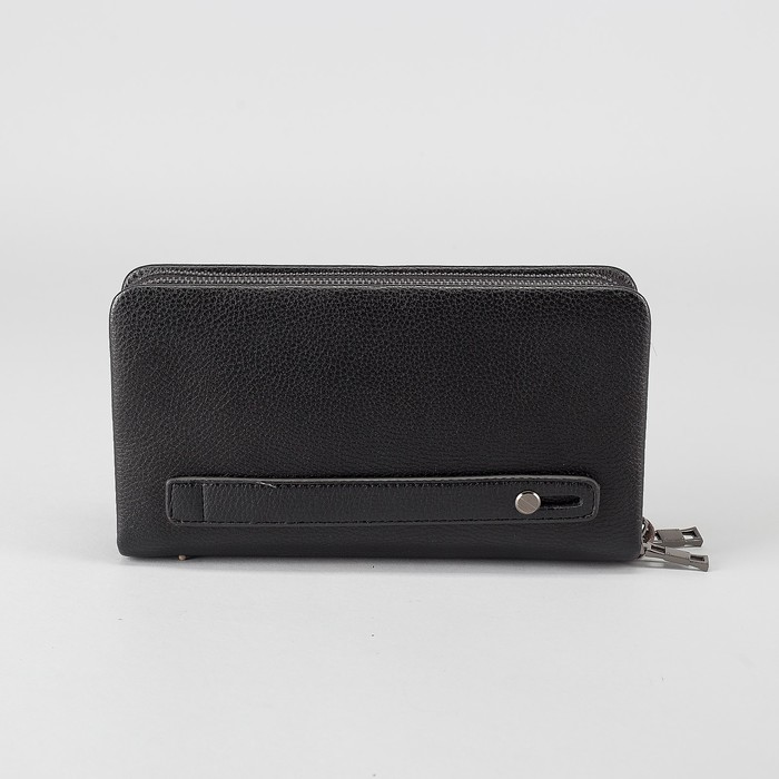 Клатч мужской на молнии, 2 отдела, ручка, хлястик, цвет чёрный