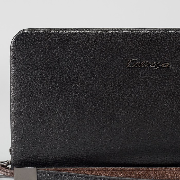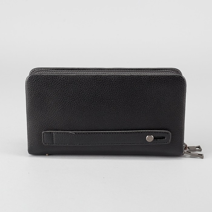Клатч мужской на молнии, 2 отдела, ручка, хлястик, цвет чёрный