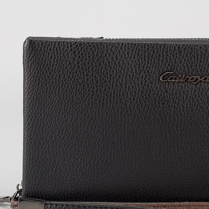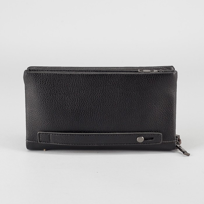 Клатч мужской на молнии, 2 отдела, ручка, хлястик, цвет чёрный