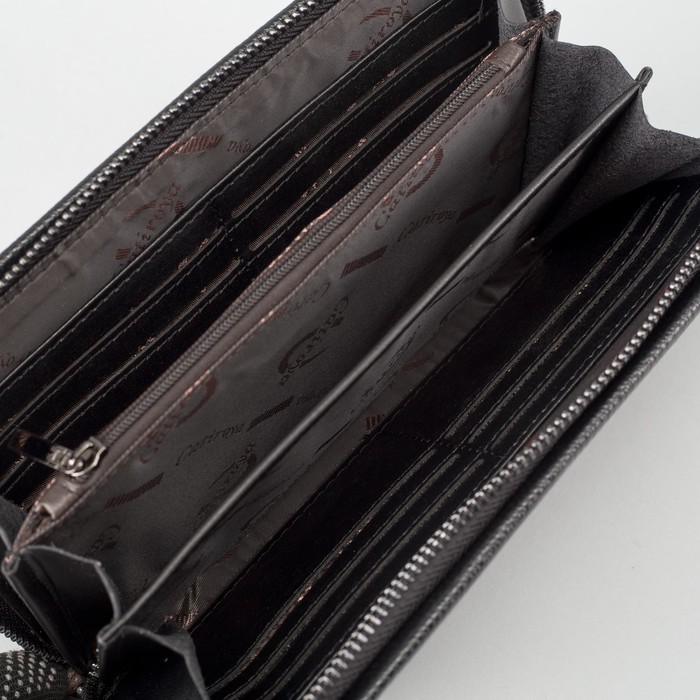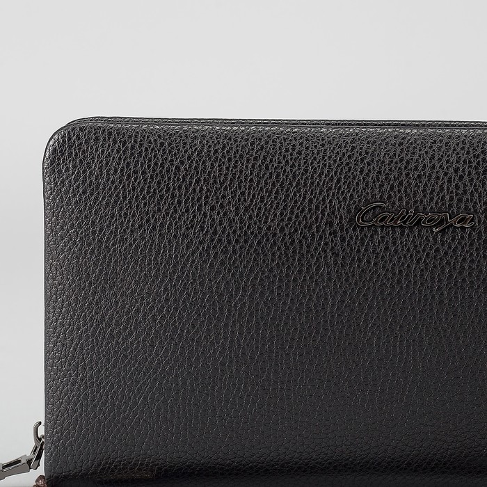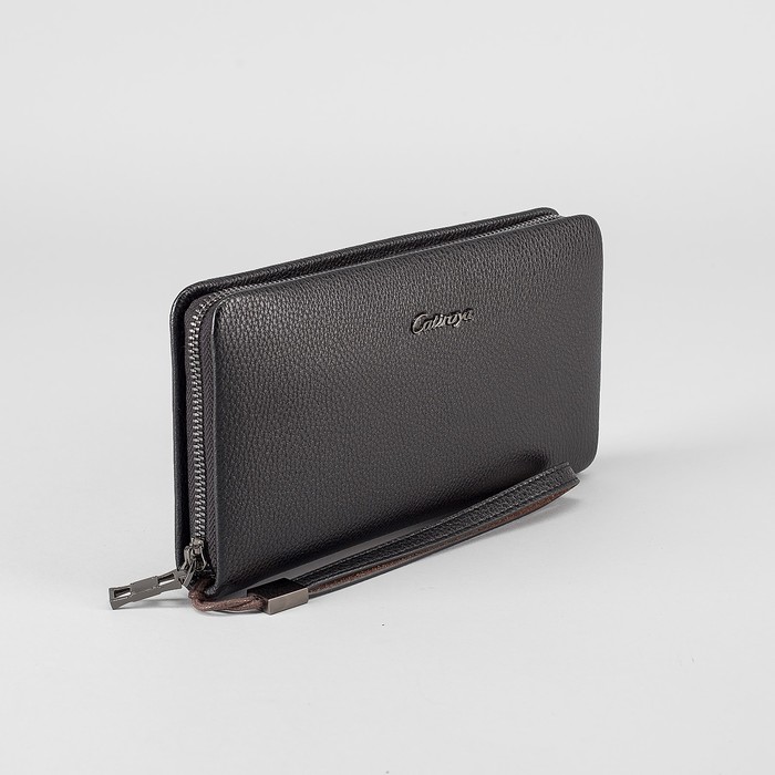 Клатч мужской на молнии, 5 отделов, ручка, хлястик, цвет чёрный