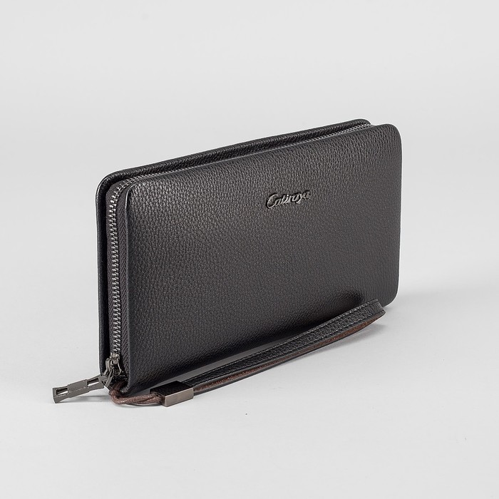 Клатч мужской на молнии, 5 отделов, ручка, хлястик, цвет чёрный
