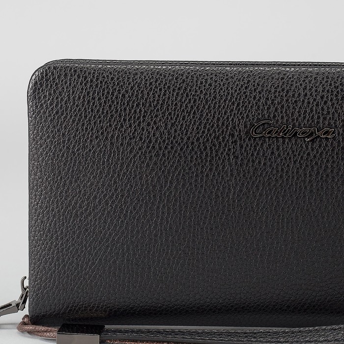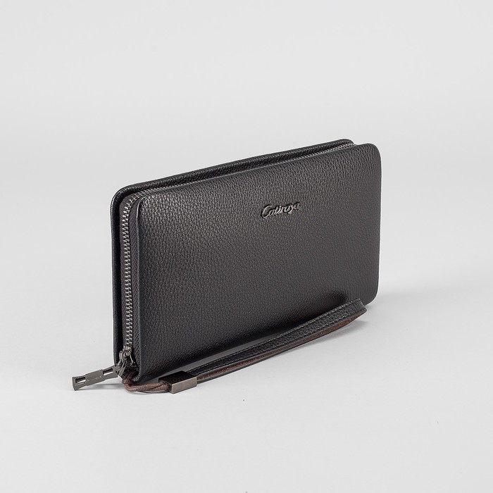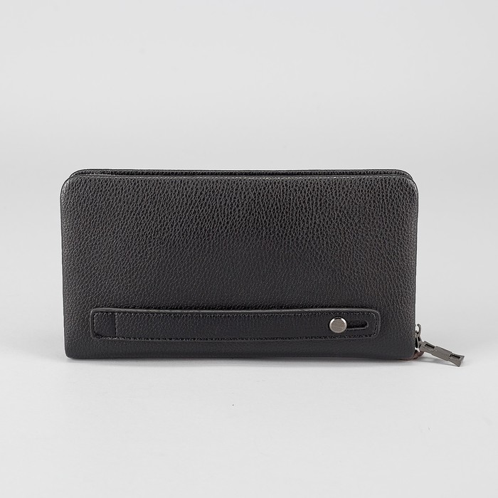Клатч мужской на молнии, 5 отделов, ручка, хлястик, цвет чёрный