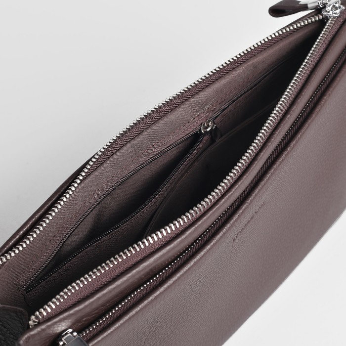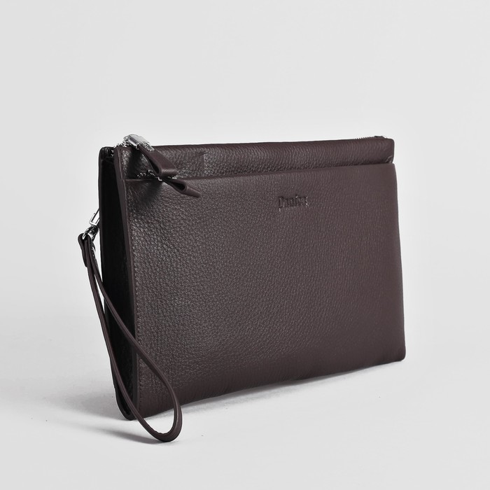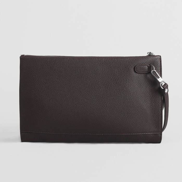 Клатч мужской, отдел на молнии, наружный карман, ручка, цвет кофе